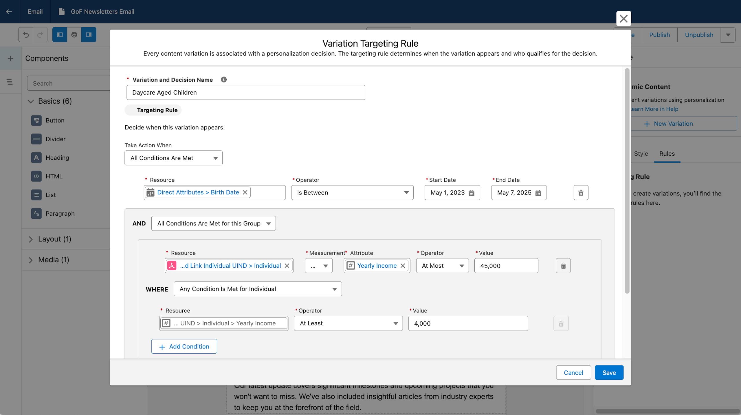 Create multiple variations of the content to communicate to constituents and stakeholders based on their unique attributes. For example, with Data Cloud as the foundation, public sector marketing specialists can easily target, segment, and deliver content to surface the right message at the right time.
