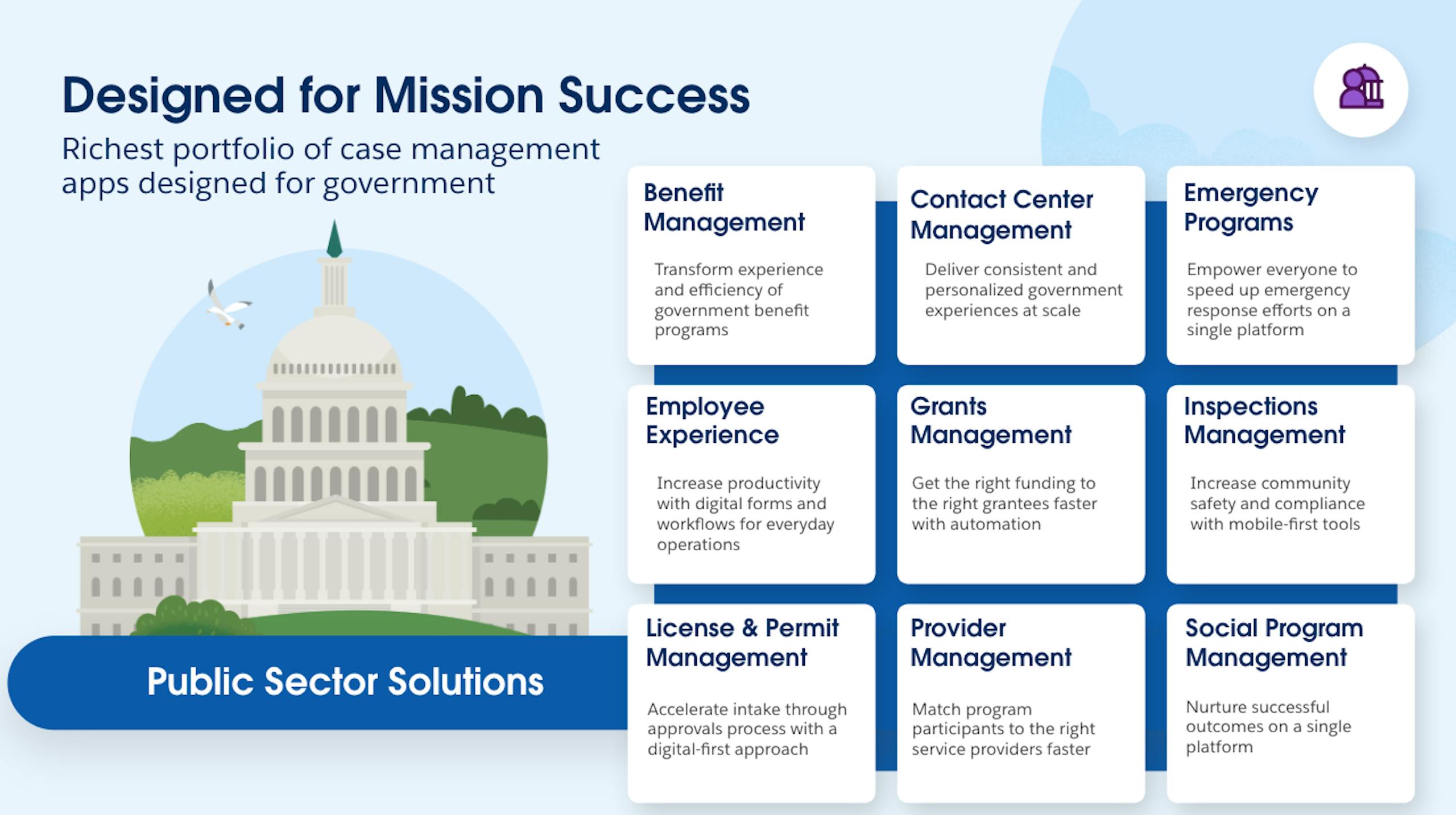 Salesforce Public Sector Solutions are adaptable case management apps designed to help government agencies future proof their mission.