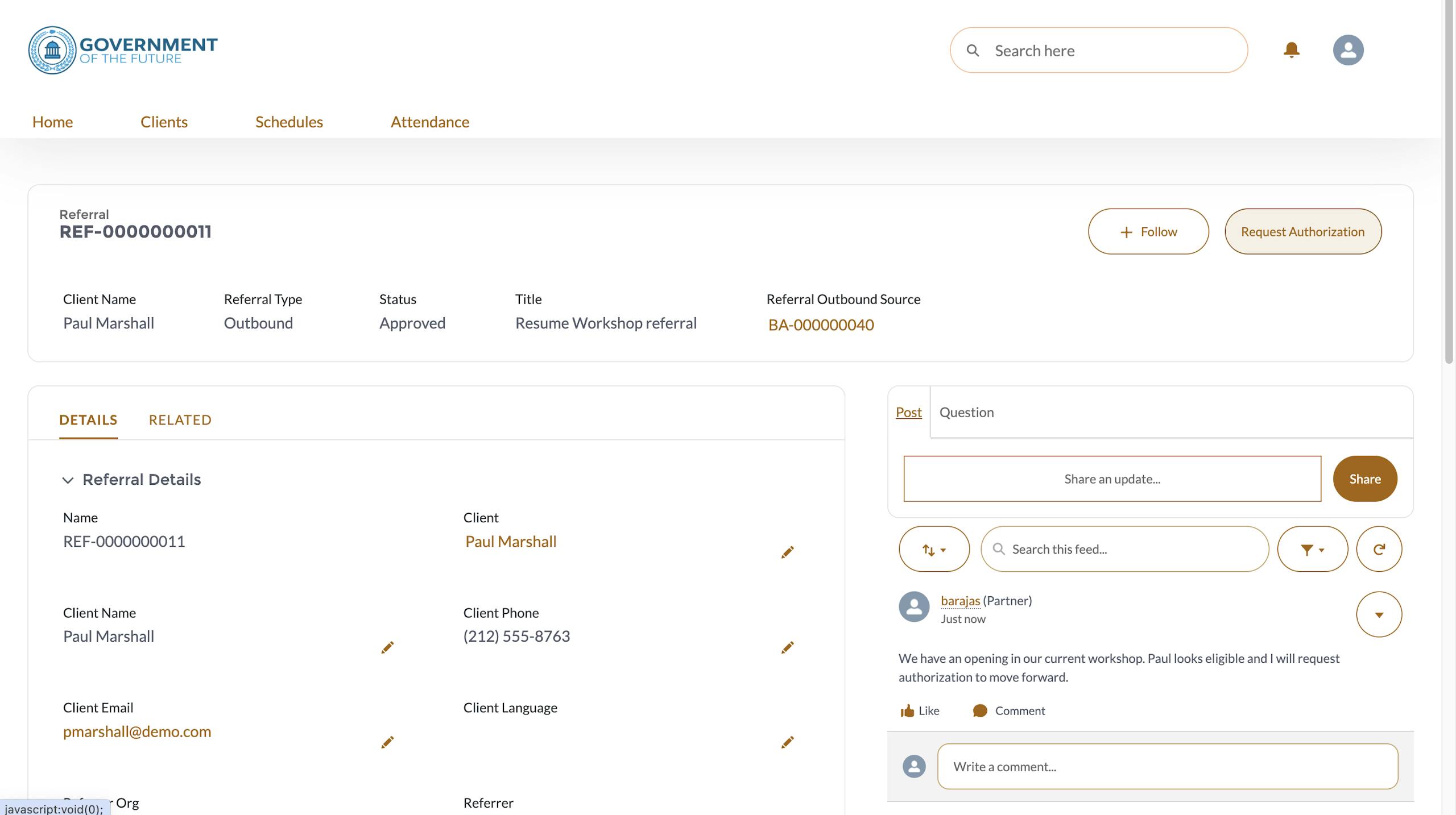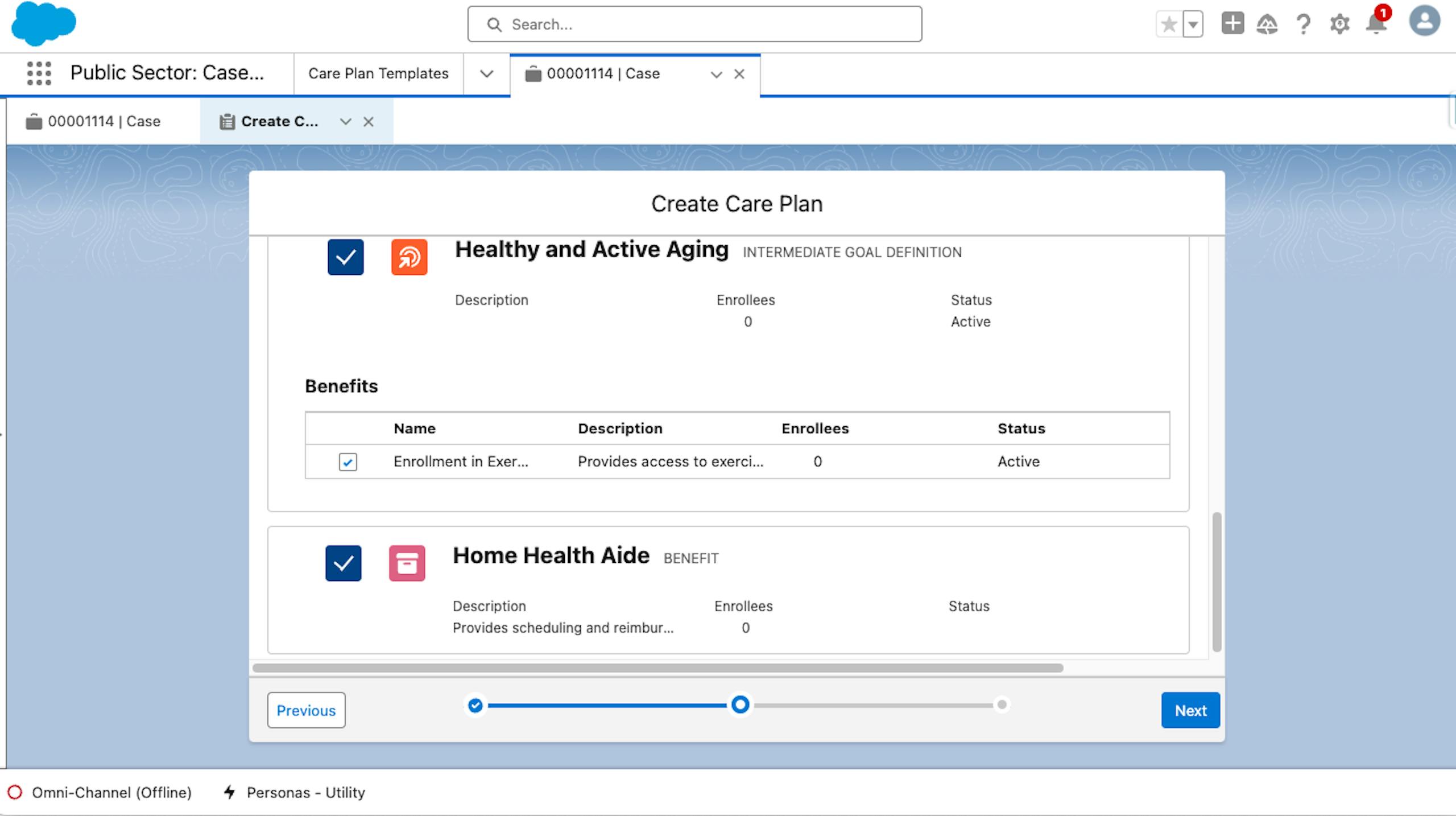 Improve aid delivery for constituents facing hardship, such as unemployment, homelessness, or domestic issues. Guide constituents toward positive outcomes and self-sufficiency with goals, tasks, programs, benefits, and care plans. Help them stay on track with automated, personalized communication. Enable constituents to access service information, determine eligibility, and apply for assistance through a custom-built portal. Facilitate referrals to connect them with external programs and manage inbound referrals for your agency's services.