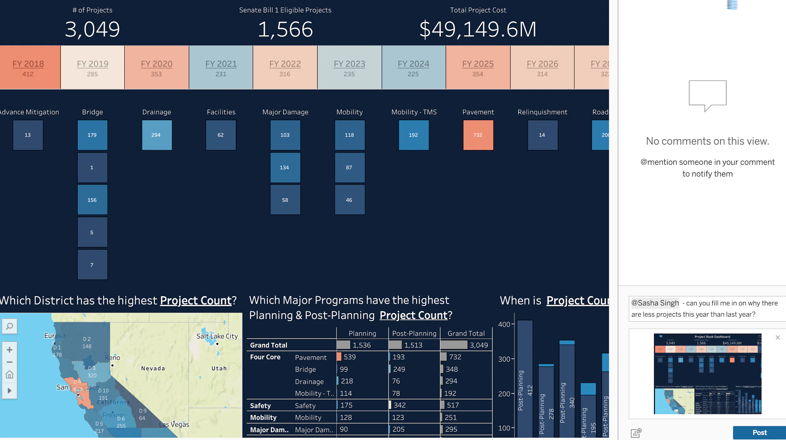 Understand the state of your agency by looking at big picture dashboards with Tableau. Whether you are looking at how to improve projects, reduce spending, or increase headcount, Analytics can help you track the health of your organization and easily take action on areas for improvement.